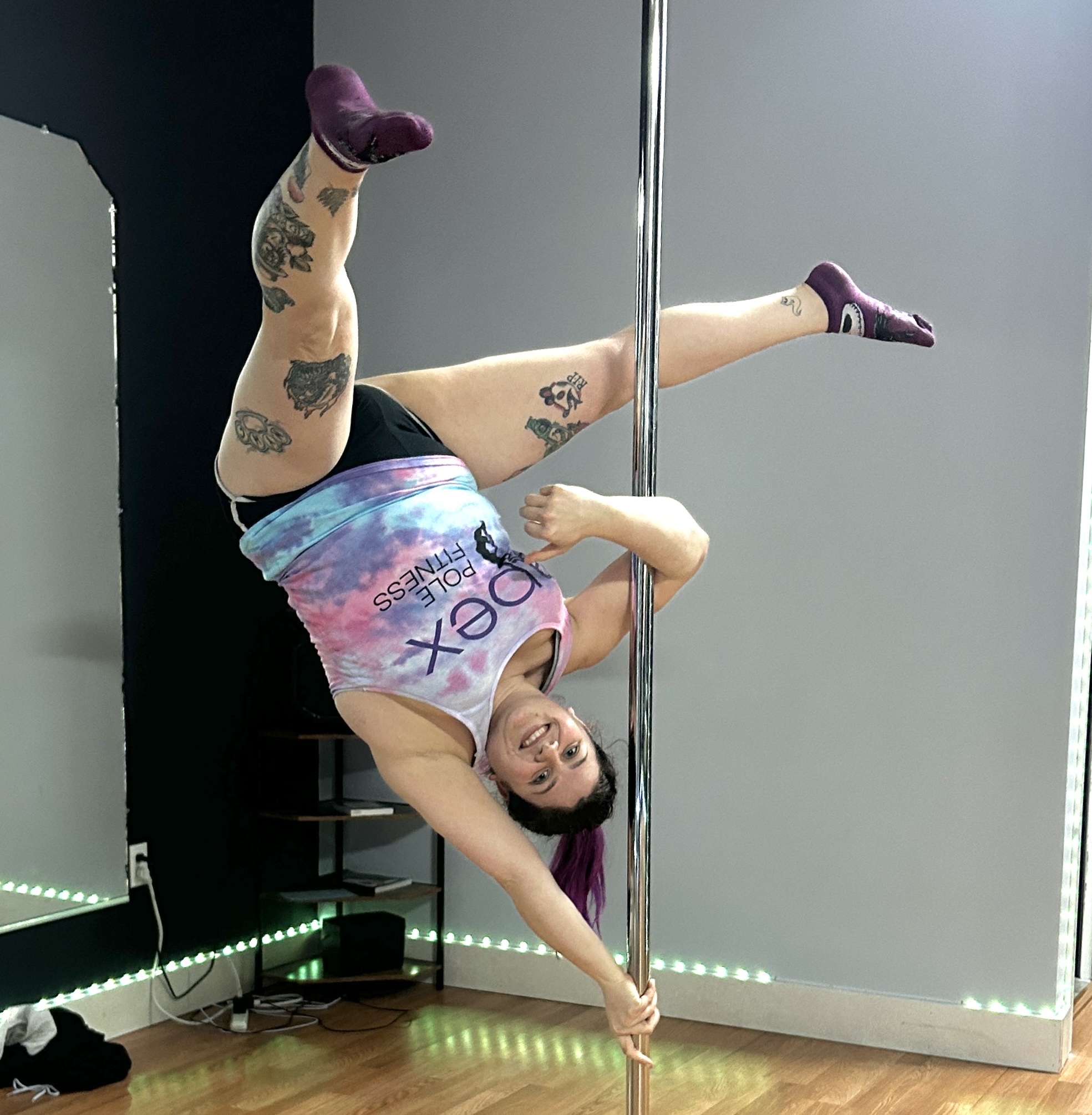 A friend tricked J Fab into attending a pole class in 2012; she had no prior dance experience. “I was like, you’re crazy. Like, I’m not graceful and not flexible. I’m not athletic. I don’t know why you think I could do this.” Despite her initial hesitation, she’s been pole dancing for over a decade. She now competes, and has won medals in various pole sports competitions in the North East.